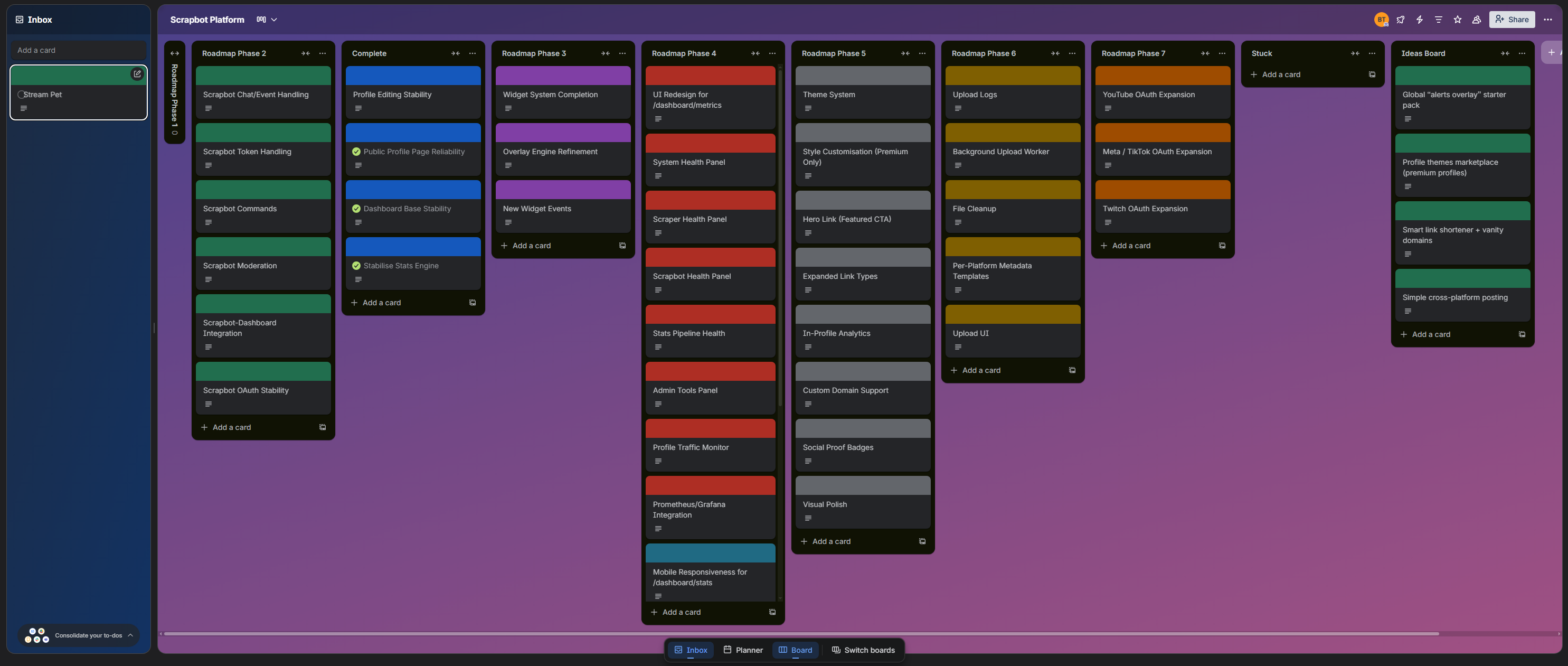 If you prefer a more visual view, here's the current working board. Expect cards to move around a lot — that's the point.